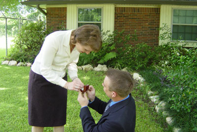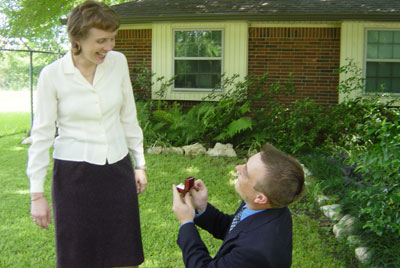 Jacob on his knee with a ring in his hand. Jacob pops the question,